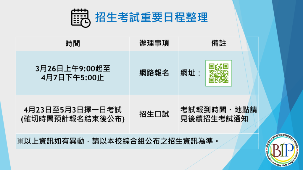 生命科學院博士班招生說明會將在3月14日登場啦,歡迎於3月12日前報名參加!